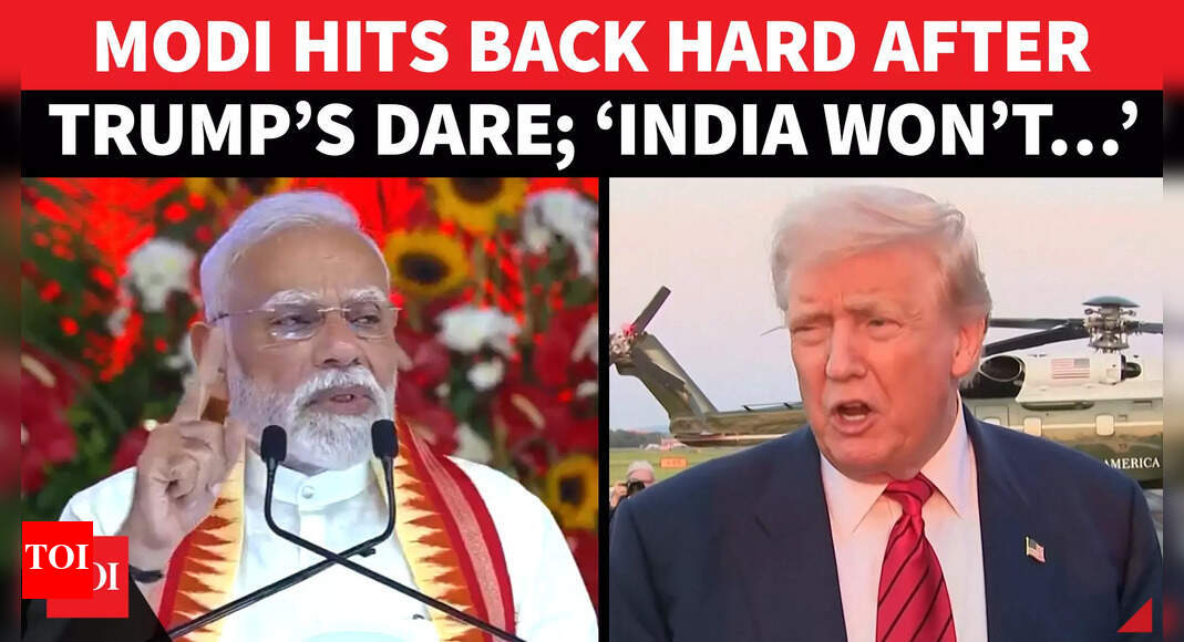 NEW DELHI: The US on Tuesday issued a notice to India over the implementation of additional tariffs set to take effect from August 27.Issued by the department of homeland security, the notice said that the tariffs were imposed in response to “threats to the United States by the government of Russian Federation,” with India being targeted for new duties as part of the policy.“The duties set out in the Annex to this document are effective with respect to products of India that are entered for consumption, or withdrawn from warehouse for consumption, on or after 12.01am eastern daylight time on August 27, 2025,” the notice read.“To address that unusual and extraordinary threat to the national security and foreign policy of the United States, Executive Order 14066 prohibited, among other things, the importation into the United States of certain products of Russian Federation origin, including crude oil; petroleum; and petroleum fuels, oils, and products of their distillation,” it added.The notice also listed a broad range of Indian products listed in the annex. It said that tariffs will apply to any goods that arrive for use or are taken out of warehouses after the deadline.PM Modi’s stern messageThis comes as Prime Minister Narendra Modi on Monday issued a strong statement in support of small entrepreneurs and farmers, ahead of US President Donald Trump’s 50 per cent tariff on India comes into effect“Today in the world, everyone is busy doing politics based on economic interests. From this land of Ahmedabad, I will tell my small entrepreneurs, my small shopkeeper brothers and sisters, my farmer brothers and sisters, my animal husbandry brothers and sisters and I am saying this on the land of Gandhi … be it the small entrepreneurs, farmers, or animal keepers of my country, for everyone, I promise you again and again, your interests are paramount for Modi,” he said while addressing a rally in Ahmedabad.‘No matter how much pressure comes’: PM Modi’s strong message as Trump’s 50% tariff looms; vows to support small entrepreneurs, farmers“My government will never let any harm come to the small entrepreneurs, farmers, and animal keepers. No matter how much pressure comes, we will keep increasing our strength to withstand. Today, the Atmanirbhar Bharat Abhiyan is getting a lot of energy from Gujarat and behind this are two decades of hard work,” PM Modi said.Since Donald Trump hiked tariffs on Indian goods to 50 per cent, including an extra 25 per cent, penalty for India’s discounted Russian crude purchases – ties between New Delhi and Washington have soured.The US accuses India of indirectly funding Moscow’s war in Ukraine through these oil imports, a claim New Delhi has flatly dismissed. India began buying Russian crude at cheaper rates after Western nations sanctioned Moscow following its 2022 invasion of Ukraine.Meanwhile, foreign minister S Jaishankar, speaking in Delhi on Saturday, mocked Washington’s stance.“It’s ironic for a pro-business American administration to accuse others of doing business,” he quipped, when asked about the US criticism. Taking a sharper swipe, he added, “If you don’t like Indian oil or refined products, don’t buy them. Nobody is forcing you. But Europe buys, America buys. So if you have a problem, just stop buying.”