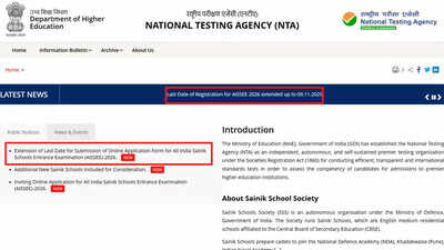 AISSEE 2026: The National Testing Agency (NTA) has extended the last date for submission of the online application form for the All India Sainik Schools Entrance Examination (AISSEE) 2026. The extension allows candidates to complete their applications for admission to Class VI and Class IX in Sainik Schools and New Sainik Schools across the country.The move follows multiple representations from candidates requesting additional time for submission. The new deadline for online applications is November 11, 2025, while the last date for payment of the examination fee through credit card, debit card, net banking, or UPI is November 12, 2025.Important dates for aissee 2026 application and exam