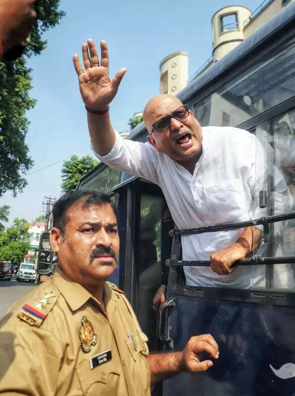 Lucknow: A delegation led by state president Ajay Rai was detained on their way to Fatehpur on Saturday to meet the family of Hariom Valmiki, a Dalit man who was allegedly beaten to death last week. While the Congress termed the action an attempt by the Yogi Adityanath govt to “silence voices seeking justice”, govt officials said that Rai and other leaders were stopped to maintain law and order, as section 144 was in force in parts of the district. Rai, accompanied by senior leaders including former minister Nasimuddin Siddiqui, Sitapur MP Rakesh Rathore, and several Congress functionaries, was stopped on the Lucknow-Fatehpur route. Following an argument with the police, he sat on a dharna, demanding to be allowed to proceed. The leaders were later detained and taken to the police lines. Rai said: “We were going there to provide financial assistance to the aggrieved family and express condolences. But the police stopped us midway.” TNN