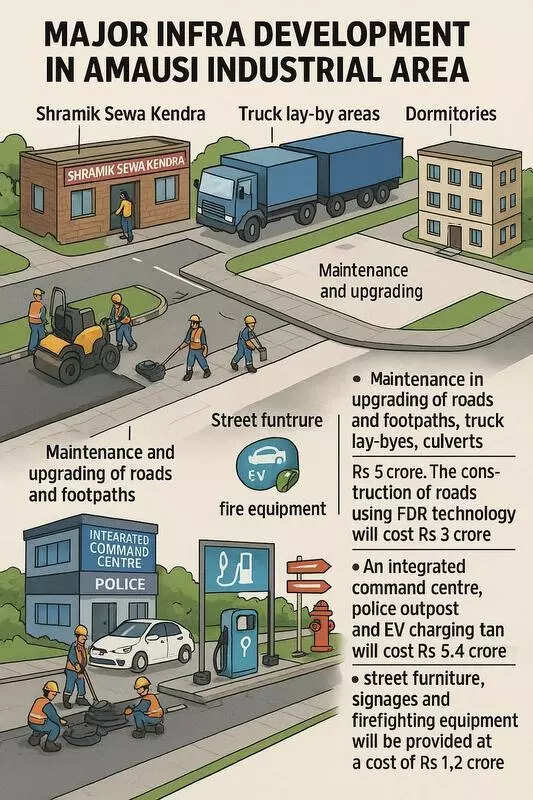 Lucknow: The Amausi industrial area is witnessing massive development, identified as a priority location for large-scale infrastructure upgrades with an investment of Rs 31 crore. The UP state industrial development authority (UPSIDA) is implementing the projects, which include the construction and upgradation of roads, drains, culverts and industrial entry gates.The area will see the development of worker and visitor-friendly amenities, including a Shramik Sewa Kendra to provide essential services for workers, a vending zone and truck lay-by areas for safe and organised parking of heavy vehicles. A cafeteria will be established to provide affordable meals and clean public toilets. To provide accommodation for workers, dormitories will be set up for house workers and staff.An official said that the main works in progress are the maintenance and upgrading of roads and footpaths, truck lay-byes, culverts and internal and external drainage, which will be made at a cost of Rs 12 crore. The construction of roads using FDR technology will involve an investment of Rs 6 crore. Additionally, the construction of an integrated command centre, police outpost and EV charging station will cost Rs 3.4 crore, while street furniture, signages and firefighting equipment will be provided at a cost of Rs 1.2 crore.Projects that are planned and will be executed shortly include horticulture and landscaping worth Rs 1.5 crore, interlocking tiles for road widening at a cost of Rs 2.2 crore, construction of a new drain at Rs 2.6 crore and the construction of a new entry gate with an investment of Rs 50 lakh. UPSIDA has also finalised the selection of a contractor for implementing annual maintenance and solid waste management work at the Amausi industrial area for Rs 1.26 crore.UPSIDA chief executive officer Mayur Maheshwari said, “In line with the industrial vision of the UP govt, UPSIDA is swiftly executing various civil infrastructure projects in Amausi industrial area. Our objective is to provide investors with a streamlined, accessible and modern industrial ecosystem, making UP a leader in ‘ease of doing business’. The successful implementation of these projects will not only boost industrial activities but also create new avenues of employment and development at the local level.”