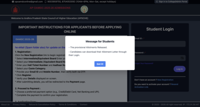 The Andhra Pradesh State Council of Higher Education (APSCHE) has published the phase 1 seat allotment result for the Andhra Pradesh Online Admission Module for Degree Colleges (AP OAMDC) 2025. Candidates can now check their allotment status by visiting the official portal, oamdc.ucanapply.comTo view the result, applicants must log in using their registration ID and password. Those who have been allotted seats are required to report to their respective colleges within the given schedule, carrying all necessary documents to confirm admission.The allotment result displays essential details including the candidate’s name, application number, rank, chosen courses, allotted college, admission fee, and other particulars. Candidates who wish to opt out of the allotted seat may withdraw and take part in upcoming rounds of counselling.