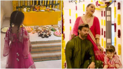The actress posted a video that captured beautiful moments of her and Karan with their daughter during Diwali. It shows them performing traditional puja, offering flowers to Goddess Lakshmi and Lord Ganesh, and doing aarti together. The family is also seen joyfully dancing, with their daughter Devi clearly enjoying the celebrations. Alongside their little girl shining in the festivities, the couple shared tender moments, including a sweet kiss on Bipasha’s cheek. The actress also lit diyas arranged in colorful flower rangolis. The trio embraced the festival in style, wearing coordinated traditional clothes, Bipasha and Devi in vibrant pink outfits, and Karan in a green kurta.Sharing the video, Bipasha Basu captioned it, “Best kind of Diwali party. Thank you, God. Sending love and light to all.”