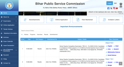 The Bihar Public Service Commission (BPSC) has declared the results of the Teacher Recruitment Examination (TRE) 2025 for candidates who completed the 18-month Diploma in Elementary Education (D.El.Ed) course from the National Institute of Open Schooling (NIOS). The decision follows a prolonged legal battle and a court directive, bringing major relief to thousands of aspirants.According to the commission, results for three primary-level subjects and six middle-level subjects have been released. A subject-wise list of eligible candidates has also been made available on the official website — bpsc.bihar.gov.in