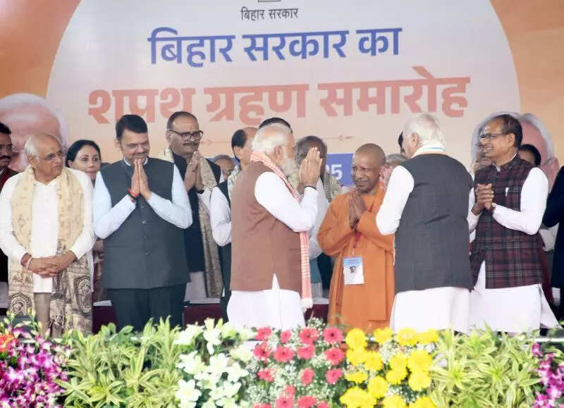 Lucknow: Chief Minister Yogi Adityanath attended the swearing-in ceremony of Nitish Kumar as Bihar CM for the record 10th time on Thursday. Kumar took oath in the presence of Prime Minister Narendra Modi and several senior NDA leaders.A govt spokesperson said when the UP CM landed at the Patna airport on Thursday morning, he was greeted with chants of Jai Shri Ram. “The presence of CM Yogi Adityanath at the swearing-in ceremony reflects not only the strengthening political and developmental ties between UP and Bihar but also signals a renewed direction for cooperation and coordination at the national level,” he said.The official said Yogi Adityanath’s decision to attend the ceremony also indicated better cooperation between the two states in the coming months, not just politically, but also in development and social spheres. “The cultural, social, and economic bonds between UP and Bihar span centuries. The coming together of the CMs of both states opens up new possibilities for deeper collaboration and shared progress in the future,” he added. Yogi had campaigned for NDA candidates in Bihar elections, addressing several meetings and participating in at least one roadshow. He campaigned in 31 assembly seats for 27 BJP candidates, and one each for JDU, LJP (RV), HAM, and Rashtriya Lok Manch. The NDA managed to win 28 of these seats.A BJP office bearer said the UP CM’s campaign speeches drew massive crowds and his powerful oratory delivered BJP’s message strongly to the public. “His dynamic participation during the campaign infused fresh energy and enthusiasm among party workers. The CM delivered clear and impactful messages on key issues such as security, development, good governance, and cultural identity, underscoring the vision of a Viksit Bharat and strengthening the confidence of the BJP workers,” the office bearer said.