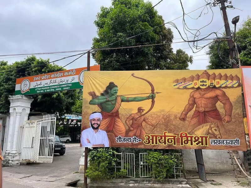 Cong hoarding depicts Rahul Gandhi as Lord Ram slaying 10-headed ‘Vote Chor’ | Lucknow News