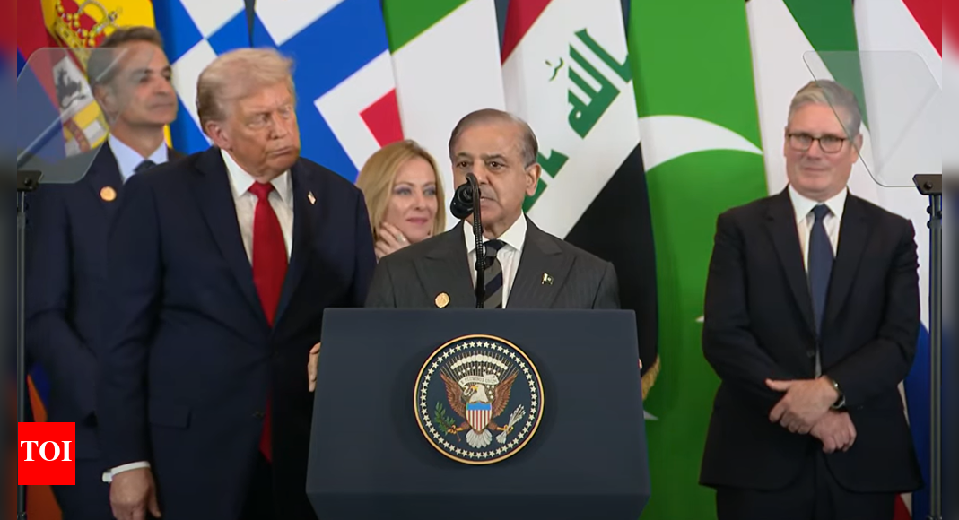 NEW DELHI: US PresidentDonald Trump on Monday surprised attendees at the Sharm el-Sheikh Summit on Gaza by inviting Pakistan Prime Minister Shehbaz Sharif to address the gathering. Interrupting his own speech, Trump asked Sharif, “Do you want to say something” and further told him to “say what you said to me the other day.“During his five-minute address, PM Shehbaz lauded Trump’s role in the peace process, calling him a “man of peace.” He said, “I would say this is one of the greatest days in contemporary history, because peace has been achieved after untiring efforts. Efforts led by President Trump, who is genuinely a man of peace who had relentlessly and untiringly worked throughout these months, day in and day out, to make this world a place to live in peace and prosperity.”