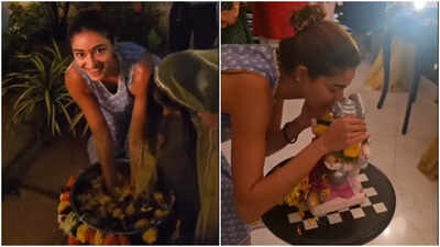 Ananya Panday warmly said goodbye to Lord Ganesha during the second day of Ganeshotsav with a simple yet emotional visarjan at her Mumbai home. On August 28, she shared an Instagram video, offering fans a personal look at the heartfelt family celebration.Ananya Panday’s eco-friendly ritual at homeThe actress performed prayers before immersing the Ganesh idol at home in an eco-friendly way, using a large water tub instead of a public water body. Surrounded by her family, including her mother Bhavana Pandey who helped with the ritual, Ananya shared a touching moment whispering to the idol, capturing fans’ hearts.A heartfelt message from Ananya PandaySharing the video, Ananya captioned the post, ““पुढच्या वर्षी लवकर या (Come back sooner next year).”Traditional festivities with Ananya Panday and familyEarlier, Ananya had posted pictures from her Ganesh Chaturthi festivities at home. The images featured the actress dressed in traditional clothes alongside her family, all posing in front of the beautifully adorned Ganpati idol.Ananya Panday’s upcoming projectsOn the work front, Ananya Panday was last seen sharing screen space with Akshay Kumar and R Madhavan in ‘Kesari: Chapter 2’. She is set to star opposite Kartik Aaryan in the upcoming film ‘Tu Meri Main Tera Main Tera Tu Meri’. Additionally, she will feature in the romantic drama ‘Chand Mera Dil’ alongside Lakshaya, directed by Vivek Soni and produced by Dharma Productions. Rumors also suggest a cameo by Ananya in Aryan Khan’s web series ‘Ba***ds of Bollywood’.