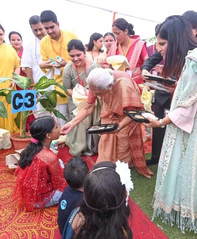 Lucknow: Governor Anandiben Patel and general secretary of Shri Ram Janmabhoomi Teerthkshetra Trust Champat Rai took part in a Kanya Pujan event organised by Prerna Parivar at Raj Bhawan on Thursday. As many as 5100 girls from 251 villages were welcomed with tilak and chunri (scarf). They were given a plate of food offerings and pen, notebooks and books as gifts. An HPV vaccination of around 100 girls was also done on the occasion. Patel said, “Educating, empowering, inculcating good values and protecting their health is the greatest need of the day.” “Girls are the embodiment of goddess Durga. The Kanya Pujan has made Raj Bhawan a unique place where programmes dedicated to Indian traditions are witnessed,” Rai said. Kshetra Pracharak of RSS Anil, women’ s commission vice chairperson Aparna Yadav, state information commissioner PN Diwedi were alsso present. TNN