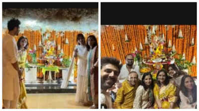 Kartik Aaryan and Sreeleela twin in white, celebrate Ganesh Chaturthi amid dating rumours: Unseen photos go viral |