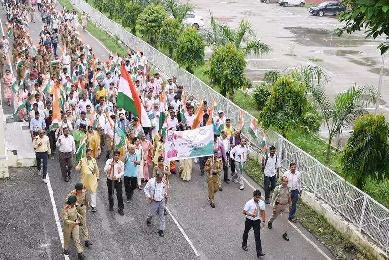 Lucknow: Lucknow University organised held a Tiranga Yatra to celebrate the spirit of freedom, unity, and patriotism on Thursday.Led by vice chancellor Prof Manuka Khanna and organised by the university’s cultural board Sanskritiki, the rally saw enthusiastic participation from faculty, administrative staff, and students. The yatra began from the Tagore Library and covered key campus landmarks before concluding at Shivaji Stadium. Participants carried the national flag, chanting ‘Vande Mataram‘ and ‘Bharat Mata ki Jai’ with the event concluding in a stirring rendition of the national anthem. The faculty of law’s NSS unit at the LU Second campus organised a Tiranga Yatra from Gate No. 2 to Mulayam Tiraha. Supported by faculty members and local dignitaries, the march inspired patriotism, national unity, and pride among all present.