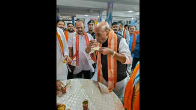 Lucknow: In a display of camaraderie and festive spirit, defence minister Rajnath Singh attended Diwali Sneh Milan (worker meet-and-greet) in Gomtinagar on Saturday where he interacted with party workers, enjoying traditional Lucknowi snacks like batasha and tikki.Addressing the crowd, Singh expressed joy at their energy and extended warm wishes for Dhanteras and Diwali. Singh emphasized his commitment to staying connected with party workers, stating that his parliamentary work is made possible by their dedication. “You are workers, and I am a worker too,” he said, reinforcing the idea of collective responsibility. He spoke about the importance of organisational structure, noting that while roles may differ, everyone is equally valuable. Using the example of number 111, he illustrated how each digit contributes to the whole, regardless of position. Reflecting on the growth of the BJP and RSS, Singh credited divine grace and the tireless efforts of countless individuals. He urged leaders to stand by workers in times of grief, calling it a sacred duty. Deputy CM Brajesh Pathak praised Singh’s leadership, noting Lucknow’s rise on the global map. BJP city president Anand Dwivedi echoed the sentiment, calling Singh’s presence a matter of pride. The event concluded with a strong message of unity, humility and service—values that continue to shape the party’s journey.