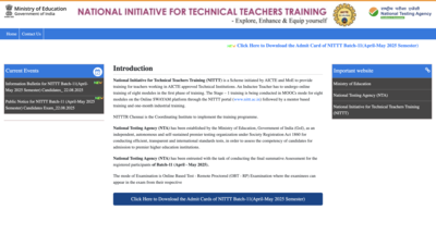 The National Testing Agency (NTA) has issued the admit card for the April-May 2025 session of the National Initiative for Technical Teachers Training (NITTT) examination. The computer-based test is scheduled to take place on August 29, 30 and September 6, 7, 2025. Candidates can now download their hall ticket directly from the official portal, nittt.nta.ac.in