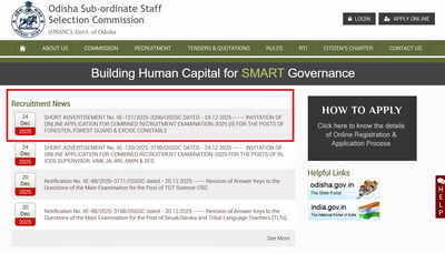 The Odisha Subordinate Staff Selection Commission, known as OSSSC, has released a short notification for Forest Guard and Forester recruitment 2026. The notice confirms a total of 943 vacancies under the Forest, Environment, and Climate Change Department and is available on the official website osssc.gov.in.This recruitment drive gives clear details about posts, vacancies, age limits, selection stages, and pay levels. If you are planning to apply, the notification explains when registration starts and how the online process will move forward in the coming weeks.Short notification and key datesOSSSC issued the short notification on December 24, 2025. It includes the main schedule for registration and application submission. Online registration and re-registration will begin on December 30, 2025. The last date for registration and re-registration is January 22, 2026. Candidates can submit their online application forms from December 30, 2025, and the final date to submit applications is January 30, 2026. The commission has stated that the detailed notification will be released soon.Vacancy details and posts offeredThe recruitment covers two posts, Forest Guard and Forester. Out of the total 943 vacancies, 896 posts are for Forest Guard, while 47 posts are for Forester. These positions fall under the Odisha Subordinate Staff Selection Commission and are part of the state forest administration setup.Eligibility criteria and age limitCandidates applying for the Forest Guard post must have passed the High School Certificate Examination, equivalent to 10+, from a recognised board or institution. For the Forester post, applicants need to have completed +2 or Intermediate Science from a recognised board or institution, along with basic knowledge of computer skills. The minimum age limit for all applicants is 18 years, and the maximum age limit is 38 years. Age relaxation is available as per rules. SC, ST, Women, and SEBC candidates get a relaxation of five years. PWD candidates are eligible for ten years of relaxation, while Gomitra candidates receive seven years.Selection process and exam patternThe selection process will be conducted in three stages. Stage one is a written test. Stage two includes a Physical Measurement Test and a Physical Efficiency Test. Stage three is document verification.The written examination will have objective-type multiple-choice questions. There will be 150 questions carrying a total of 150 marks. The exam duration is 150 minutes. Negative marking of 0.50 marks will apply. The standard of the exam will be based on High School or 10th class level.Salary details and application feeForest Guard posts fall under Pay Level 4 with a salary of Rs. 19,900. Forester posts are under Pay Level 7 with a salary of Rs. 25,500. The examination fee is nil for all categories. Applications must be submitted online through the official OSSSC website.