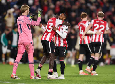 MANCHESTER: The crisis is over for Manchester United. For now at least. For Liverpool, however, it is a very different story after a fourth straight loss in the Premier League on Saturday. A 3-2 defeat at Brentford delivered the latest blow to the defending champion’s trembling title defense and left it sixth in the standings. United is heading in the opposite direction, a 4-2 win against Brighton moving Ruben Amorim’s team up to the heady heights of the top four. Sunderland, though, is providing the unexpected narrative of the season after a stunning comeback 2-1 win at Chelsea saw it climb to second. Liverpool loses again The losses keep on coming for Liverpool. Not even a frantic fightback at the Gtech Community Stadium could prevent coach Arne Slot suffering a fourth straight defeat in the league, a result that leaves his team four points adrift of leader Arsenal, having played a game more. “This is a tough one to take. Unfortunately this was another not nice evening to have,” said Liverpool captain Virgil van Dijk. “I am sure we will get out of it, but we won’t get out of it by just talking about it.” Brentford led 2-0 after goals from Dango Ouattara and Kevin Schade. Milos Kerkez then got Liverpool back into the game in first-half stoppage time. Igor Thiago’s penalty in the second half put Brentford back in control until Mohamed Salah lashed a brilliant shot into the top corner in the 89th. With 11 minutes of added time, the Merseyside club ramped up the pressure in search of an equalizer, but couldn’t find a way through. It raises further questions about Liverpool’s title defense, coming on the back of defeats against Crystal Palace, Chelsea and United. Not since 1984 has Liverpool successfully retained the title. In all, it was a fifth loss from the last six games in all competitions. Slot said it was the worst performance of all the losses in the league. “We didn’t do the basics right, especially the first half, but during parts of the second half as well,” he told TNT Sports. Amorim reaches winning benchmark at United A third straight win for United extended Amorim’s best league run since he was appointed as coach last November, and provided a sense of momentum not felt for a long time at Old Trafford. “I think we are improving in the bad moments,” he said. “We can respond in a different way and we feel that we can solve anything. It’s so hard and in football, everything can change in one week, so let’s enjoy today and focus on the next one.” It was the first time United had won three league games in a row in the same season since February 2024. Victory also ended Brighton’s winning streak in this fixture, which dated back three seasons. It is still too early to tell if Amorim has turned a corner after such a wretched start to his tenure, including the 20-time champion’s worst-ever season in the Premier League last term. But coming on the heels of last week’s morale-boosting win at Liverpool, the signs are positive, even if Brighton sparked a fightback to make it a nervy finish for the home fans. A prime source of encouragement for Amorim is the manner in which his summer signings have added a new dimension. Brazil forward Matheus Cunha scored his first goal for the club with a curling shot from outside the area to give United a 24th-minute lead. Another new signing, Bryan Mbeumo, also scored twice in the second half, making it three in his last two games, after Casemiro had doubled the lead with a deflected effort before the break. “The money was well invested,” Brighton coach Fabian Hurzeler said. It was a former United player, Danny Welbeck, who gave Brighton hope with a brilliant free kick that flew into the top corner. When substitute Charalampos Kostoulas headed another goal in time added on, the tension rose inside the stadium. Then came Mbeumo’s second to snuff out any chance of a collapse and ensure the winning streak continued. “This needs to be the normal for this club,” said Cunha. “I am so happy to be a part of this. Amazing day, I will remember this.” High-flying Sunderland Chemsdine Talbi scored Sunderland’s stoppage-time winner at Stamford Bridge. Chelsea led after four minutes through Alejandro Garnacho, but Wilson Isidor leveled in the 22nd before Talbi’s dramatic winner in the third minute of second-half added time. “We have a great team with great players,” Talbi said. “We knew we could do the job and we showed it today.” Sunderland was only promoted this season and moved to within two points of leader Arsenal, which plays Crystal Palace on Sunday. There was also a late winner at St James’ Park, where Bruno Guimaraes scored in the 90th minute to seal Newcastle’s 2-1 victory over Fulham. Jacob Murphy put Newcastle ahead in the 18th, but Sasa Lukic equalized in the 56th for Fulham. “We have to learn how to finish. In the first half we could have finished at least 3-0,” Guimaraes said. “We had a lot of chances, but I am happy in the end we scored a goal. In the last few games we have been punished at the end.”
