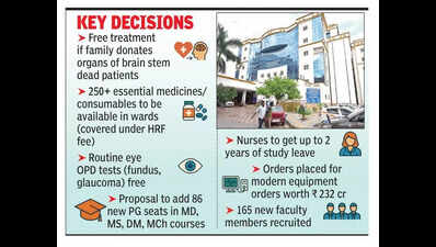 Lucknow: Patients and their families at Ram Manohar Lohia Institute of Medical Sciences (RMLIMS) will soon experience significant relief in terms of cost, time and access to treatment following major policy decisions taken in the institute’s 41st Governing Body meeting on Tuesday.One of the most impactful decisions concerns families of brain-dead patients who consent to organ donation. In such cases, the hospital will bear the cost of the patient’s hospitalisation, reducing a major financial burden on grieving families. Another decision set to directly benefit patients is the immediate availability of commonly used medicines and consumables within hospital wards. At present, there are delays in starting treatment as patients’ attendants must rush to the pharmacy to procure these items. To end this problem, the institute will now stock over 250 medicines and consumables in each ward. Patients will only pay a nominal HRF (Hospital Resource Fund) fee, which will cover the cost of these items, ensuring that treatment begins without delay. Eye patients will also benefit, as the hospital has abolished the extra Rs 50 charge for routine OPD procedures like fundus examination and glaucoma testing. These will now be included in the standard OPD registration fee, saving patients both money and time. For the future availability of doctors and better patient care, the Governing Body approved sending a proposal to the National Medical Commission (NMC) to increase 86 postgraduate seats (MD, MS, DM, MCh) in various departments including anesthesia. This expansion is expected to improve specialised services and reduce patient load. The Governing Body also approved two years of study leave for nurses pursuing higher education, which will help strengthen clinical services in the long run. On the infrastructure front, the institute informed the board that out of the Rs 250 crore approved by the state govt for advanced medical facilities in 2024-25, purchase orders worth Rs 232 crore for equipment have already been issued. This will bring cutting-edge technology to the hospital, enhancing patient care. In terms of manpower, the institute shared that 165 new faculty members have been recruited in a recent drive, which will improve teaching, training and healthcare delivery. The meeting was chaired by chief secretary and institute chairman S P Goyal and attended by Amit Kumar Ghosh, principal secretary medical education and vice president of the institute, DGME Aparna U, ABVMU vice-chancellor Prof Sanjeev Mishra, former VC Dr P K Singh, DG medical health Ratan Pal Singh Suman, institute director Prof C M Singh, representative of ACS finance Sameer Verma, along with other officials and members.