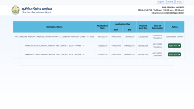 The online application window for TNTET 2025 opened on August 11 and will close on September 8, 2025. Candidates must fill in details, upload required documents, and pay the examination fee via the official website.Here is how to register online