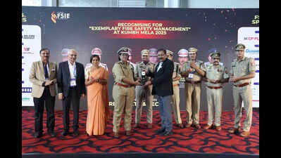 Lucknow: The UP fire and emergency services department has been conferred with the Bravery and Superhero of Fire Services Award by the Fire and Security Association of India (FSAI) for its outstanding service during Maha Kumbh 2025. The award was presented at a programme held in New Delhi, recognising the department’s exemplary service and flawless safety record.ADG (Fire) Padmaja Chauhan said, “Under the guidance of CM Yogi Adityanath, the department swiftly controlled even the most serious fire incidents and successfully achieved the target of zero casualties during the entire 45-day event. During this period, the department handled 185 fire incidents and 24 major fires, saving property worth approximately Rs 16.5 crore.” A total of 54 fire stations, 27 outposts, 1,500 trained personnel, and 351 fire tenders were deployed, supported by modern tools including water towers, firefighting robots, quick-response vehicles, mist bikes, ATVs, and boats, she said. Key officials felicitated alongside the ADG included Pramod Sharma (nodal officer, Mahakumbh Mela), Ankush Mittal (CFO), Ramesh Tiwari (CFO), Sanjeev Kumar (fire officer), and Amit Kumar (second fire officer). Earlier, Goa CM Pramod Sawant also lauded the UP fire department’s preparedness, noting that its ‘war-level’ planning had set a benchmark for large-scale event safety in India. Despite the arrival of over 66.5 crore devotees at Maha Kumbh 2025, the department fulfilled the state govt’s pledge of a “Safe Maha Kumbh,” a feat now being recognised both nationally and internationally.