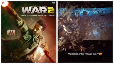 War 2 fever has gripped audiences, and the proof’s in these new videos from the film’s screening that have gone viral on social media.Jr NTR fans are leading the cheer brigade with their over-the-top celebrations to mark the Mass Superstar’s Bollywood debut. While his fans took to the streets in the early hours of Thursday morning to celebrate the release by bursting firecrackers and lighting up flares and even performing poojas ahead of the screening. Some clips also saw city streets being transformed into party zones, with fans waving giant posters, wearing customised T-shirts, and even dancing under disco lights while waving paper cuttings of the actor in the air. Once inside the theatres, the celebrations seemed to have continued. Videos doing the rounds on social media see fans hooting, cheering, screaming and dancing as ‘Man of the Masses’ Jr NTR made his entry in an action-packed scene on the big screen. The scene involved a shirtless NTR literally flying onto the scene and making a hero’s landing on a ship. Videos of ecstatic fans throwing confetti to celebrate the superstar’s grand entry have given netizens a peek at all the frenzy around the film’s release.In War 2, Jr NTR plays elite operative Vikram, who faces off against Hrithik Roshan’s Kabir in a globe-trotting spy chase. The film which also stars Kiara Advani, Ashutosh Rana, and Anil Kapoor, is part of the studio’s expanding Spy Universe.Released in Hindi, Telugu, and Tamil on August 14, the film has already recorded massive advance ticket sales exceeding Rs 30 crore, setting the stage for a blockbuster weekend. The film will, however, face some competition from the box-office clash with Rajinikanth’s Coolie.